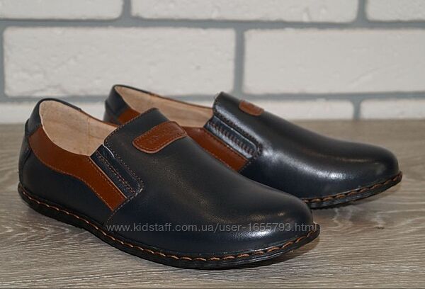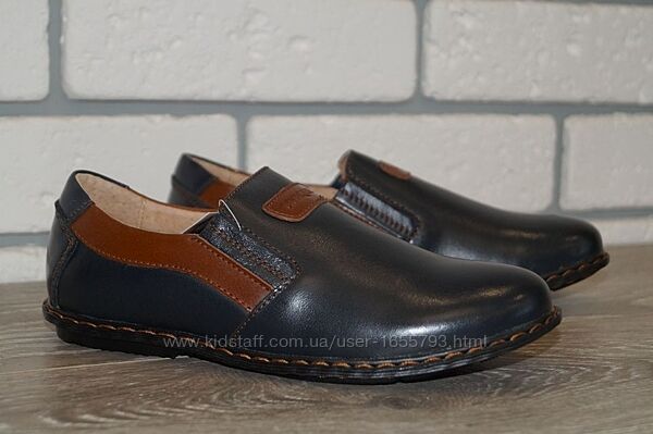 Якісні, зручні та оригінальні туфлі для хлопчика.Пошиті із натуральної шкіри. Внутрішній матеріал і устілка шкіряні не парять і забезпечать вільне відведення вологи від стоп дитини. Повнота регулюється за допомогою бічних вставок-резиночок.