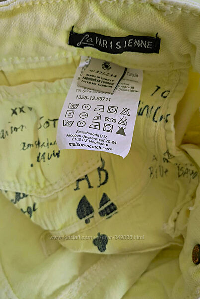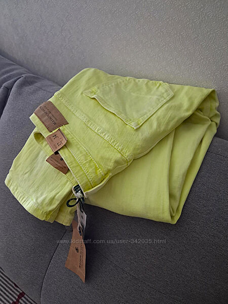 Яскраві штани, котон з єфектом стрейчу та потертості від популярного бренда MAISON SCOTCH. Фото не дуже передає якість, в житті модель виглядає набагато краще та має сочний неоновий відтінок. Розмір 32-34. Заміри: по таілії - 40 см., по стегнам напівобхват - 50 см., довжина - 119 см., ширина штанини по низу - 16 см. Штани абсолютно нові, але є невеликий нюанс, заводский брак (видно на останньому фото) - нерівномірно затерта невелика площа тканини на центральному шву на сідницях, але під кофтиною буде абсолютно непомітним. Ціна за рахунок цього зниженаДругие объявления продавца