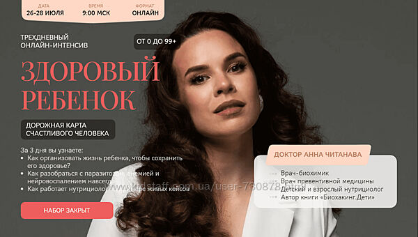 Анна Читанава Здоровый ребенок (2024)Трехдневный интенсив. В рамках трехдневного онлайн-интенсива я покажу вам, как ежедневно делать легкие шаги для здоровья ребенка. Применяя советы на практике, ваш ребенок будет становиться здоровее с каждым днем.