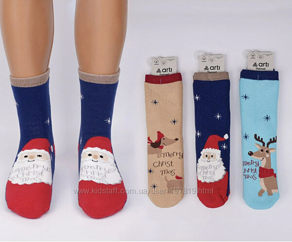 Набор 6 пар. Махровые детские новогодние носки детям 1-8 лет ТМ Arti Турция. Новогодние носки. Подарок на Новый Год и Рождество. Носки с Сантой Клаусом. Носки с оленями. Зимние махровые детские носки. Шкарпетки махрові. Махрові дитячі шкарпетки.Многие расцветки носков унисекс. Для мальчиков и девочек.