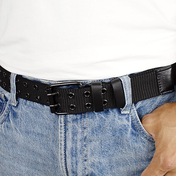 Подробное описание: Ремінь чоловічий текстильний з люверсами JK чорний