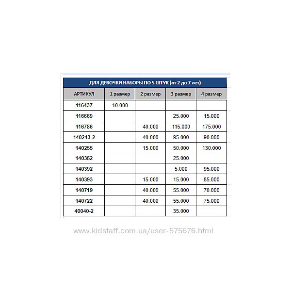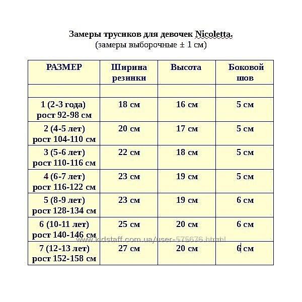 Розміри трусиків різняться за віком: 2-3 роки, 4-5 років, 5-6 років, 6-7 років