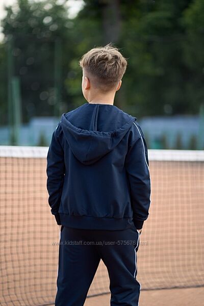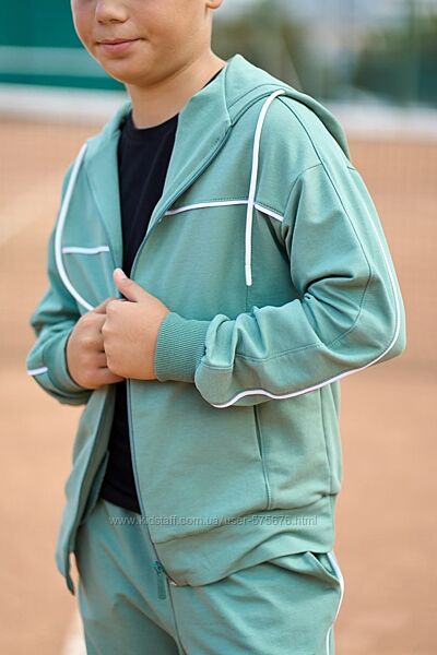 Спортивний костюм на хлопчика з двуниткиХуді з капюшоном на блискавці, є бічні кишені, кофта прямого крою з опущеним плечем, на рукаві стильний кант білого кольору