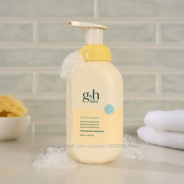g&h Baby Дитячий шампунь для волосся та тіла – це ніжний пінистий засіб для миття волосся і тіла, який огорне вашу дитину густою піною і залишить її шкіру м’якою й доглянутою. Чиста та безпечна формула засобу ефективно очищає та заспокоює ніжну дитячу шкіру (ідеально підходить для немовлят від 6 місяців та дітей старшого віку).