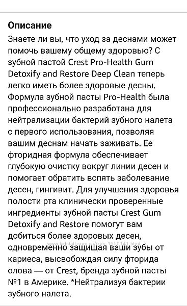 Подробное описание: Зубная паста Crest Pro-Health Gum Detoxify and Restore