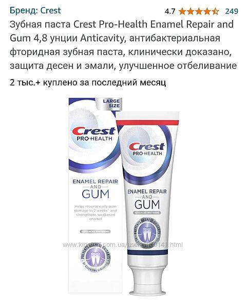 Подробное описание: Зубная паста Crest Pro-Health Gum and Enamel Repair Advanced Whitening