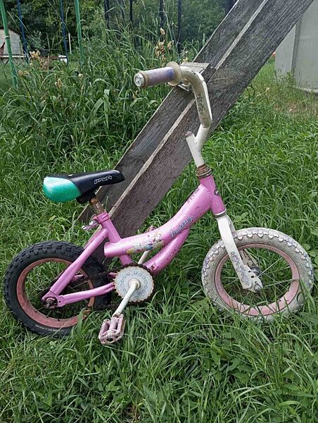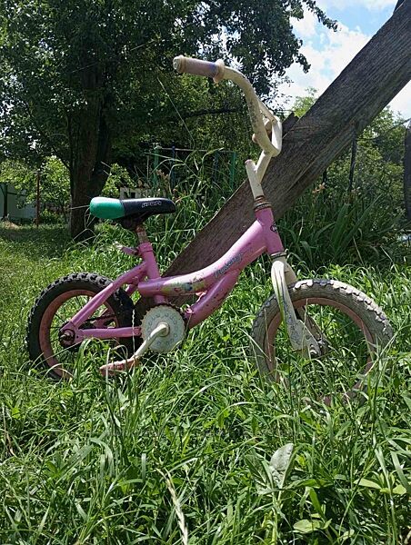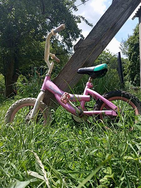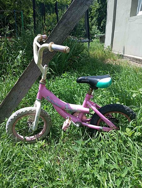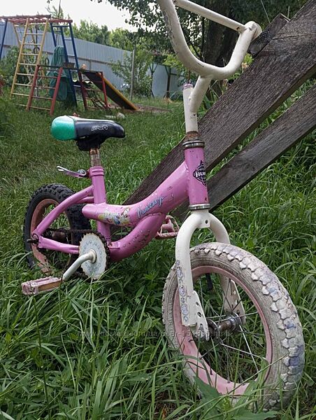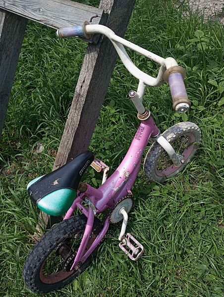 Дитячий велосипед. Рожевий велосипед. Велосипед для дівчинки. Стан на фото, фото з усіх сторін, повністю робочий. Є поржавілість (учтено в ціні), але це не впливає на їзду.Колеса 30 см діаметр, довжина 87 см, висота 77 см +- сідушка піднімається - опускається