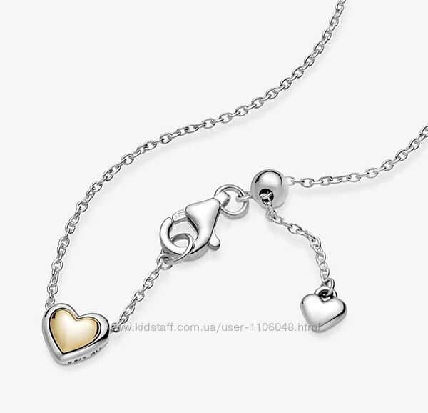 Срібний ланцюжок з сердечком під Pandora (1-4 фото). Підвіска складається з двох сердечок, з´єднаних тонким ланцюжком. Одне сердечко виконане зі срібла, а друге - вкрите позолотою. Такий контраст кольорів робить підвіску особливо привабливою. Підвіска кріпиться на тонкий ланцюжок з карабіном.Ланцюжок регулюється на будь-яку довжину. Така підвіска стане чудовим подарунком для коханої людини або символом власної любові до себе.
