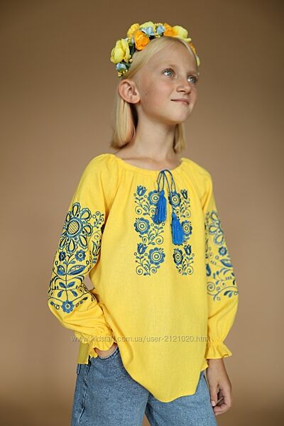 Подробное описание: Вишиванка патріотична жовта для дівчинки