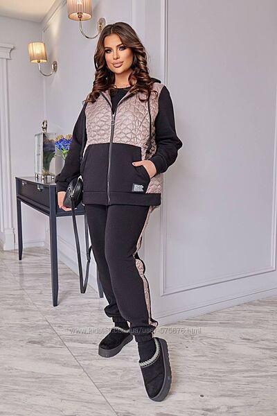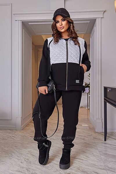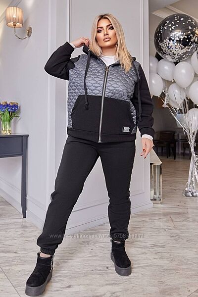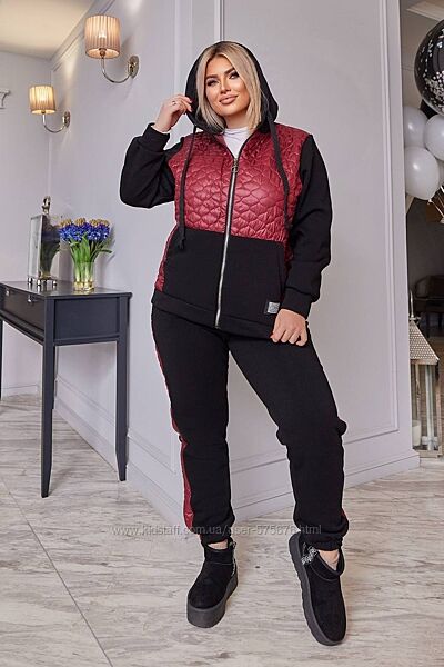Подробное описание: 48-50, 52-54, 56-58 теплий костюм тринитка на флісі та стьобана плащівка