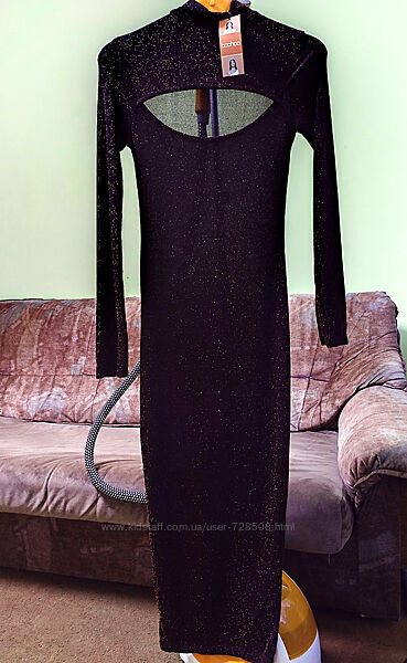 Boohoo. Англия. В наличии. Блестящее платье с вырезом.