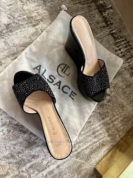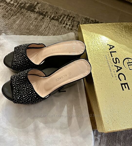 Дуже гарні шльопанці на платформі Аlsace. Турецький дорогий бренд, висота платформи 12 см, спереду 3.5 см. Натуральна лакова шкіра зовні, шкіра всередині, розмір 38, устілки 24,5. Стан нового взуття. Взуті один раз у приміщенні! Легкі та зручні. Пильовик, коробка, повний комплект. Хто знайомий з цією маркою - знає це якісне дороге взуття!Другие объявления продавца