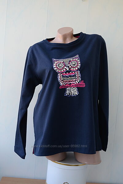 Теплий світшот із совою Country Rose прекрасно зігріє вас у прохолодну погоду. З начосом, без гумки внизу, модель актуальна, чудово поєднуєтьсяз джинсами, має стильний вигляд. На бирці розмір М, колір темно-синій.