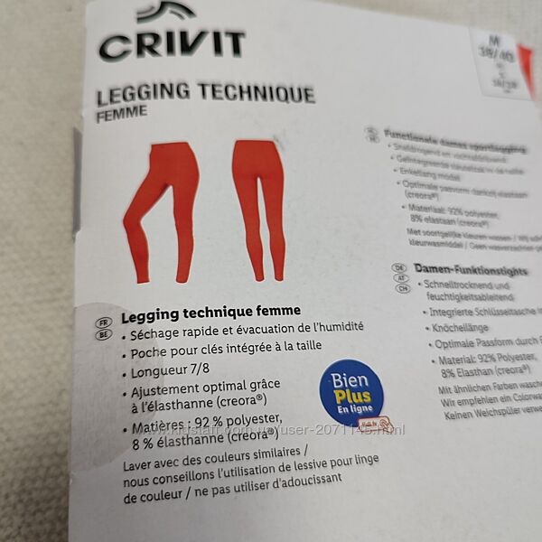 Спортивные леггинсы для тренировок немецкого бренда Crivit.- быстросоохнущий и впитывающий слагу материал