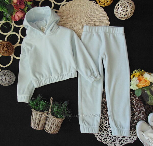 Суперовий флісовий костюм M&S на 7-8 років, зріст 122-128см, складається з худі та штанів джогерів ніжно-блакитного кольору