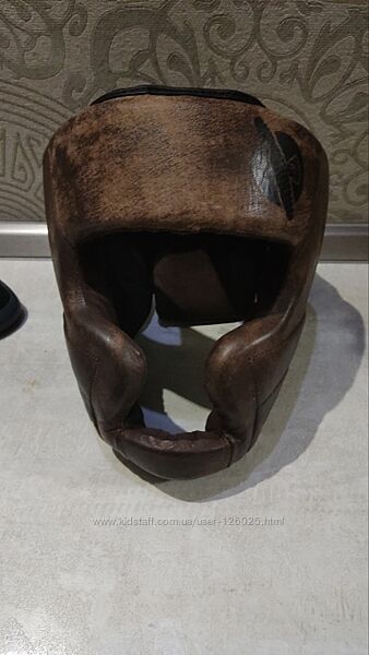 Материал верха: натуральная кожа. Материал наполнителя: многослойный пенополиуретан. Размер: M Цвет: коричневый. Назначение: бокс, муай тай, единоборства. Тип: с полной защитой. Фиксация на голове: липучки.