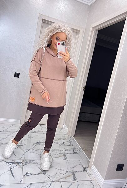 Стильний костюм виготовлений з якісної двунитки, цікавий крій. Туніка вільного крою, штани 7/8 на манжеті, висока посадка, кругова резинка. Якісні лекала.