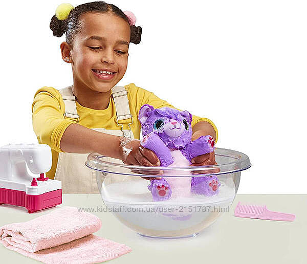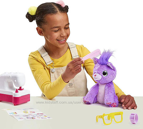 Врятуйте свій клубок хутра, викупивши його. Потім висушіть, розчешіть і полюбите їх, і ви виявите, які вони насправді свійські тварини!Тепер створіть модний одяг для свого нового вихованця за допомогою чарівної швейної машинки! На Вас чекає 10 сюрпризів. Яку модну річ ви розкриєте у швейній машинці? Чи буде це спідниця, шорти, бант чи топ? Додайте аксесуари, як-от годинник і окуляри. Налаштуйте та прикрасьте свою іграшкову швейну машинку наклейками. З Scruff-a-Luvs Sew Surprise у вас буде найкраща одягнена домашня тварина в місті!