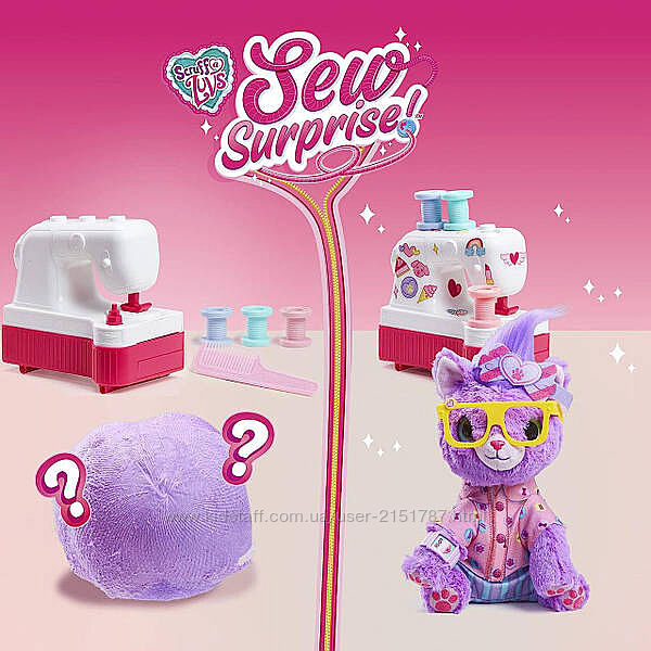 Зшийте багато сюрпризів! Новий Sew Surprise від Scruff-a-Luvs сповнений несподіваних відкриттів. Яке забарвлення буде ваша швейна машинка? кого кольору та стилю аксесуари ви отримаєте? Граючись зі своїм новим пухнастим другом, ви відкриєте для себе 10 сюрпризів.