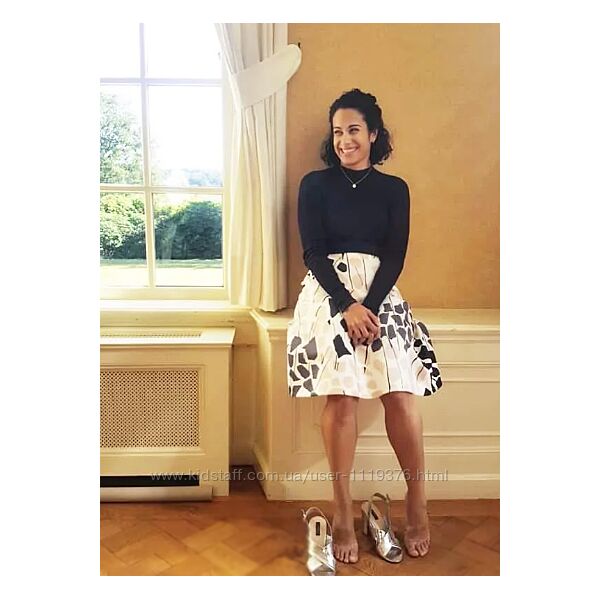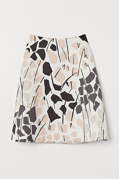 👉 Расклешенная юбка длиной до колена из атласа с набивным рисунком. Потайная молния сбоку. Без подкладки. Ткань очень плотная.