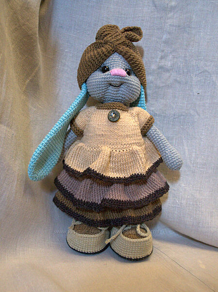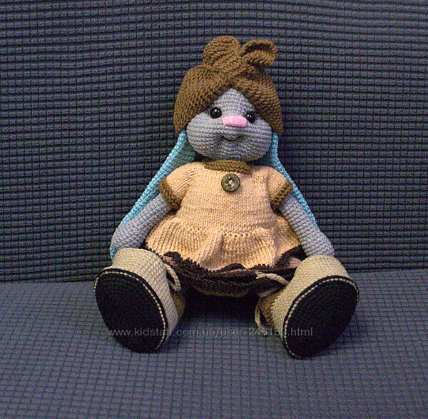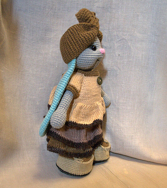 Цікава м´яка іграшка - зайчик Тильда для більш дорослого віку.Пряжа - Джинс,зріст 29 см, сидячи 21 см.Ніжки добре рухаются, чоботи ,сукня та Солоха знимаються,наповнювач новий іграшковий синтепон. Ваша дитина має можливість сама пошити одежу.Другие объявления продавца