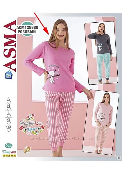 Подробное описание: Пижама женская хлопок на байке, Турция, штаны, реглан