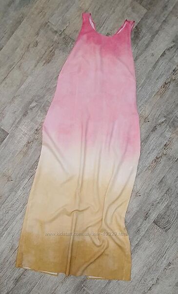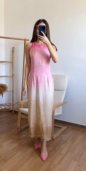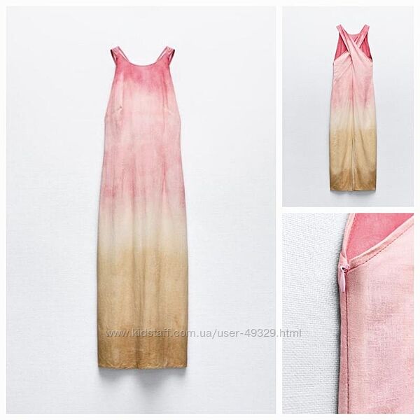 Красива сукня міді tie dye із сумішевого льону від Zara. З круглим вирізом і перехрещеними ззаду бретелями. Застібається на прихованублискавку збоку. Розріз ззаду внизу. Легке, стильне, трендове. Шикарний