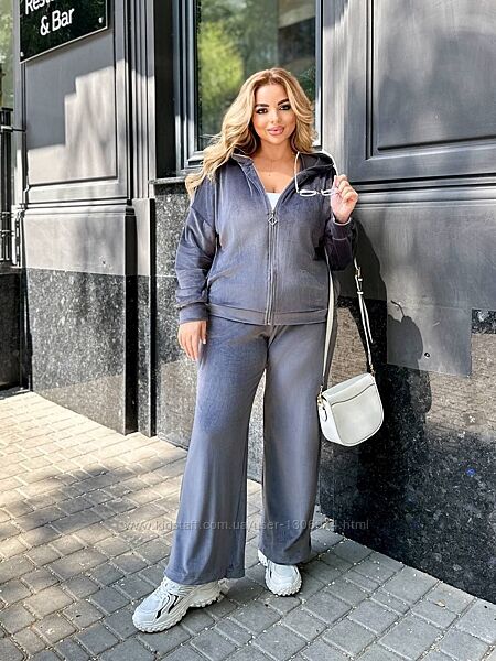 54-56 Ог-130 см, довжина кофти 73 см, довжина рукава 49 см, От - 90( тянеться до 120) , Об -130 см, довжина штанів 109 см