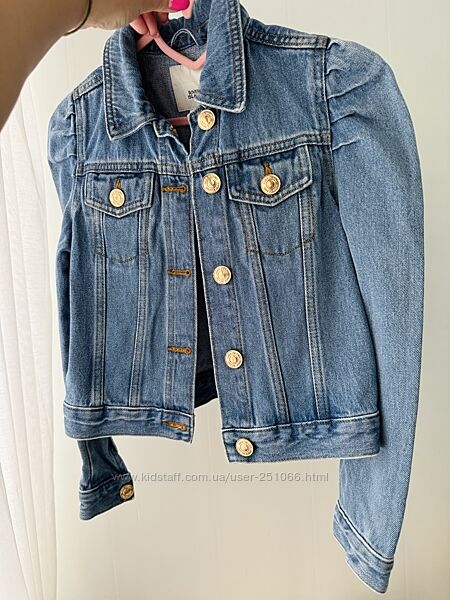 Джинсовый пиджак в идеальном состоянии, купила здесь на сайте, но не успели одеть. Очень красивый пиджак, пуговицы металические под цвет золота, не затертые все как новые, джинс плотный , качественный.Замеры :