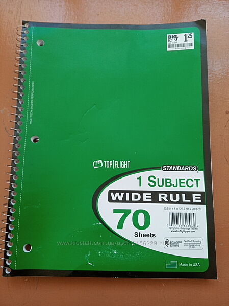 Зошити A4 в лінійку на 70 листківЗелений: стан - не користувались, але обкладинка спереді трішки потерта ( злізла фарба знизу під числом 70 і 2 вмятинки видно на 2-му фото). Ззаду і всередині блокнот як новий.