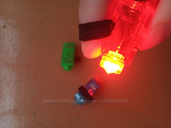 Кожен з ліхтариків на резинці, яку можна одягати на палець руки будь-якої повноти, або навіть на 2 пальці, бо резинка прекрасно тягнеться.