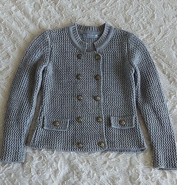 Серый кардиган фото 3: длина - 44 см, рукав - 46/35 см. Цена - 200 грн.