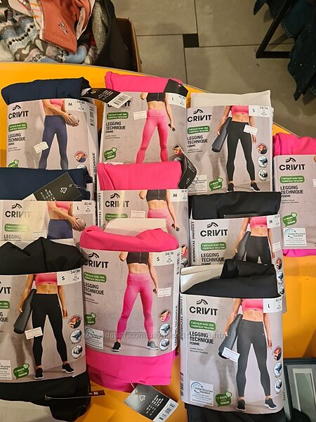 Шикарні плотні коригуючі спортивні легінси Crivit - хс, с, м.новинка, тільки приїхали. Плотність на вищому рівні.Увага - у них трошки інакше тепер маркування. Наприклад, пише С, а нижче і на лосінах самих видно, що це ХС. Орієнтуємось на розмір на лосинах.