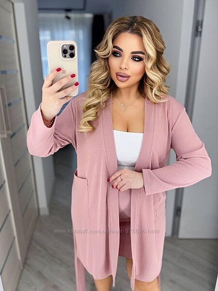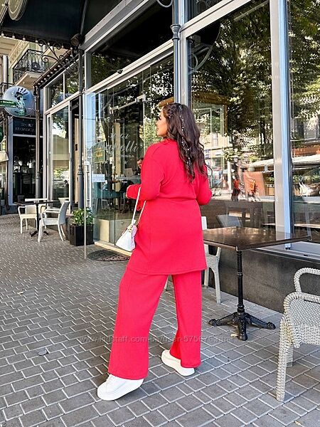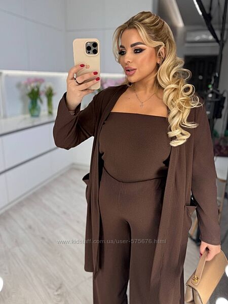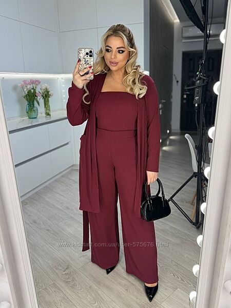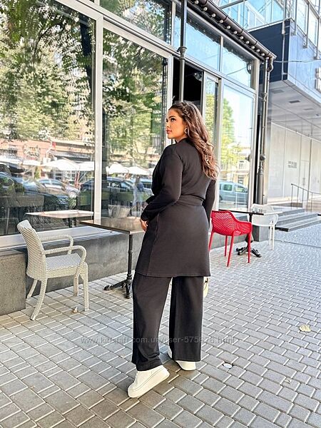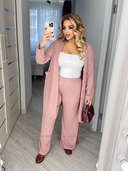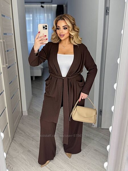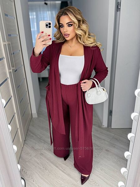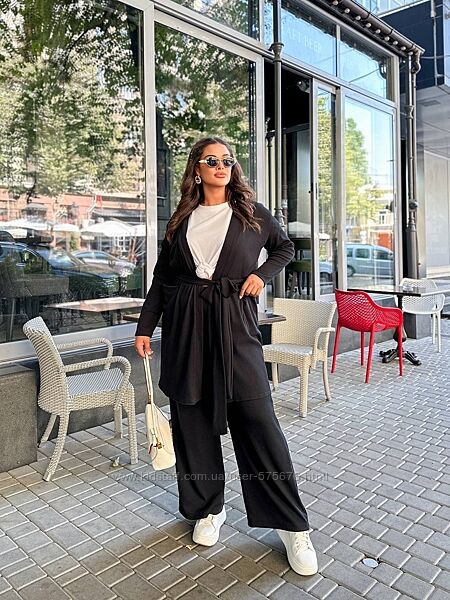 Подробное описание: р.42 до 60р. Костюм двійка кардіган і брюки палаццо мустанг