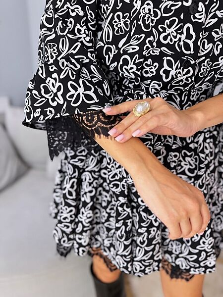 Трендова сукня вільного крою з воланами та дорогим французьким мереживом.Тканина: євро-софт