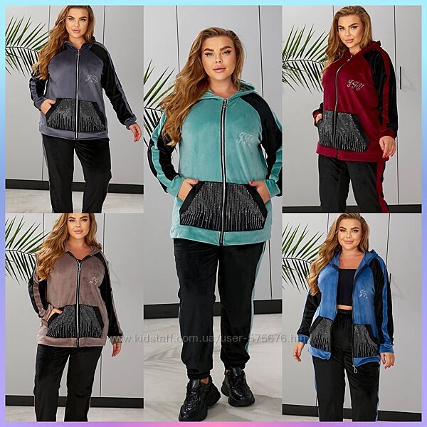 48-50, 52-54, 56-58 прогулянковий велюровий костюм