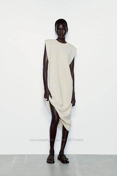 Подробное описание: Варена трикотажна бежева сукня міді від Zara - S