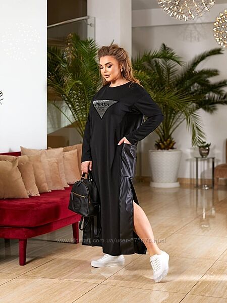 Подробное описание: 50-54, 54-58, 58-62, 62-66 сукня прада креп дайвинг та еко шкіра