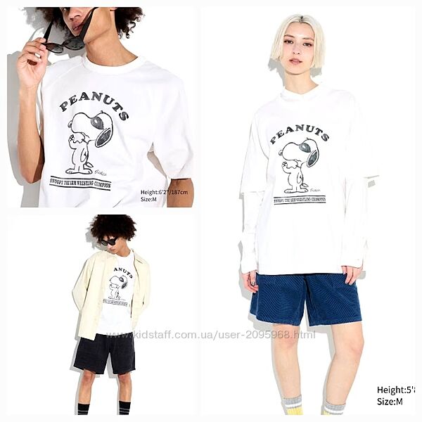 Uniqlo UT біла футболка цупка осіння Snoopy Peanuts, унісекс