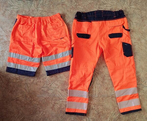 Новий. Розмір XL, маломірять, підійдуть на L. Заміри штанів: напівобхват пояса 50 см (у не розтягнутому стані), напівобхват стегон 63 см, загальна довжина 108 см (є можливість подовжити на 5 см), відстань від пахового шва до низу (крокова довжина) 77 см, ширина штанини в нижній частині 23 см, відстань спереду від пояса до пахового шва (посадка) 30 см. Заміри шортів: напівобхват пояса 48 см (у не розтягнутому стані), напівобхват стегон 63 см, загальна довжина 60 см, ширина штанини в нижній частині 32 см, відстань спереду від пояса до пахового шва (посадка) 33 см. Захисний одяг Portwest є запобіжним одягом підвищеної помітності. Зручний крій ідеально адаптується до фігури. Виготовлений із високоякісної тканини, у складі: 65% поліестер, 35% бавовна. Матеріал відрізняється міцним, щільним переплетінням. Особливості: світловідбиваючи елементи, на поясі підшита протиковзка стрічка, водовідштовхувальне просочення тканини, підсилювачі на колінах для захисту від стирання, регулювання ширини в талії за допомогою гумки, кишені для можливостівикористання наколінників, додаткові посилення, болти та шви підвищують довговічність, світловідбивні елементи підвищують видимість, штани мають кілька практичних кишень, що забезпечують зручне зберігання різних робочих інструментів і аксесуарів . Made in Bangladesh.