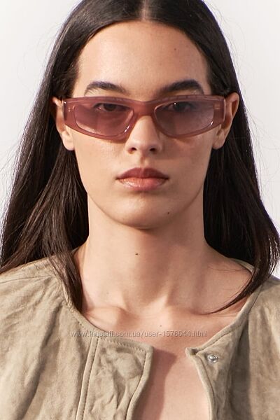 Солнцезащитные очки в тонкой прямоугольной пластиковой оправе. Чехол в комплекте.