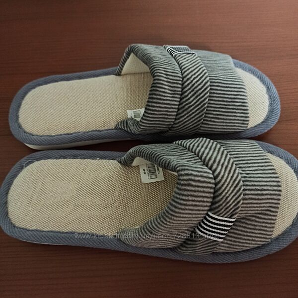 Домашні зручні капці, тапки. Вказаний р.38-39, підійдуть і на р.40. Довжина устілки 26 см, середня повнота.Верх - схожий на велюр, вельвет, устілка рогожка, зносостійка підошва.