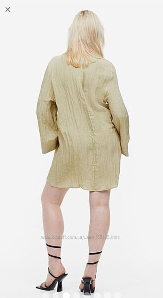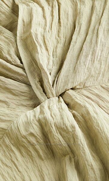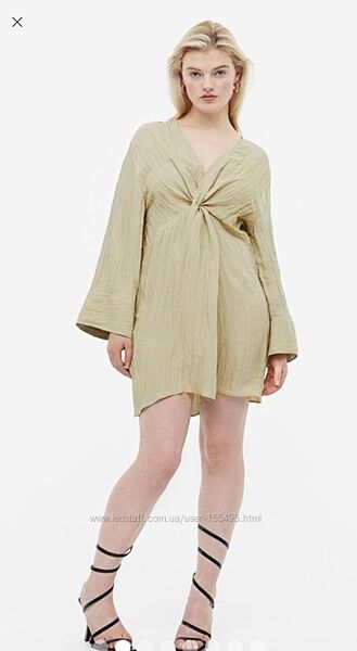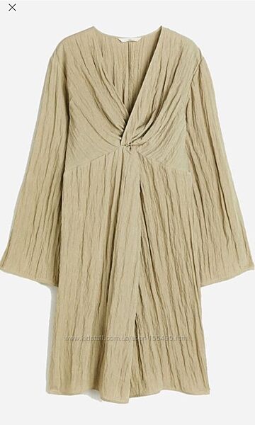 Тонкое , легкое платье из фактурной жатой ткани бренда H&M. Впереди оригинальный узел со складкой-запахом. Рукав длинный, можно заворачивать.Размер указан L (46-48)