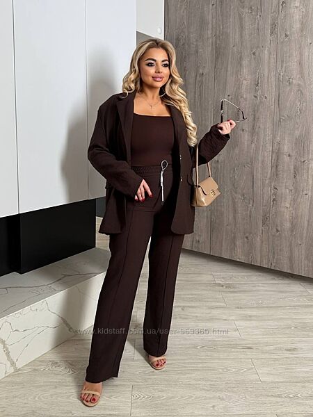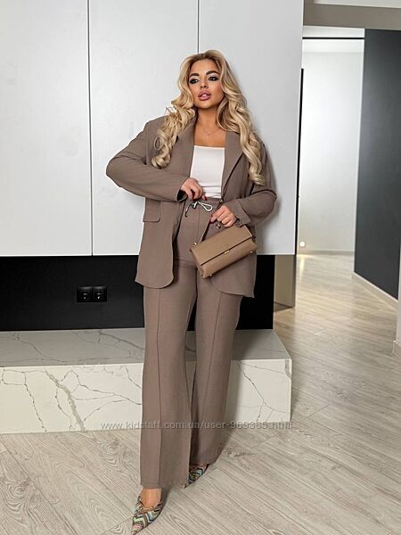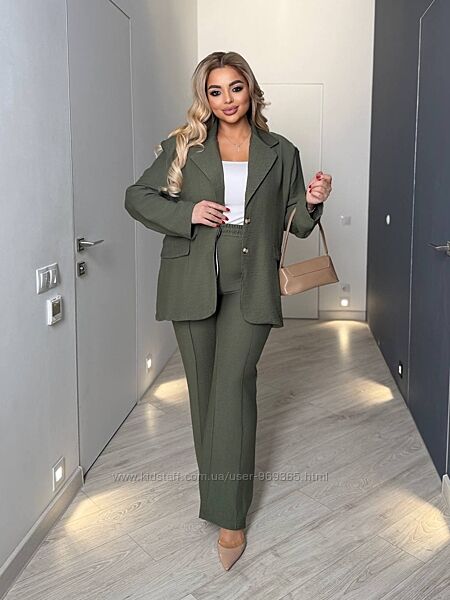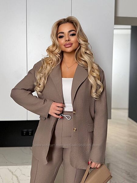 Ви будете виглядати супер стильно! Дуже комфортне і хороше лекало, висока посадка штанів, подовжений піджак!