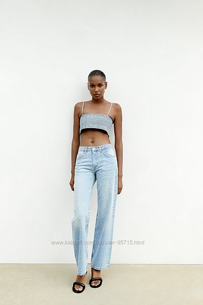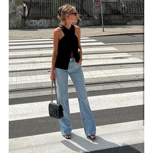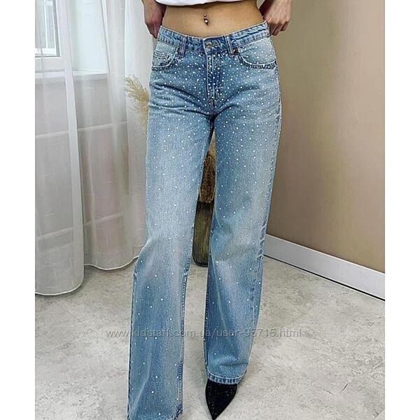 Джинси ZARA WIDE LEG - FULL LENGTH зі штучними перлинами