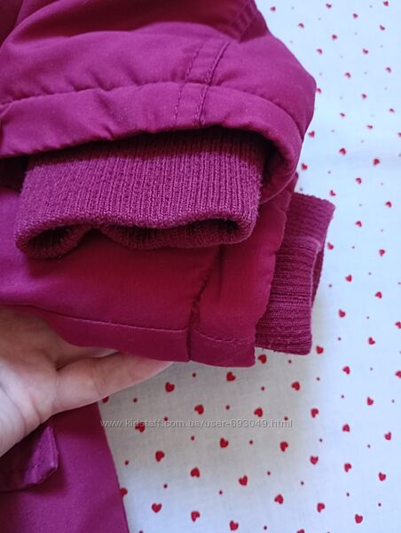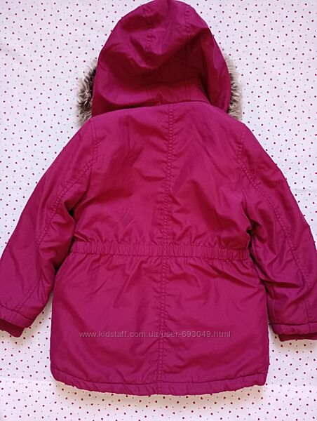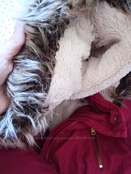 Продам куртку-парку фірми George на 5-6 р., 110-116 см ., але може бути і довше, до 122 см. (дивіться заміри). Куртка підійде на холодну осінь та теплу зиму. Утеплювач синтепон + штучне хутро (в рукавах немає). Капюшон також утеплений штучним хутром, не відстібається. Блискавка пластикова, працює відмінно. На талії резинка. Трохи катишок на дов´язаних манжетах та невелика пропалена дірочка на лівому рукаві (фото 8).