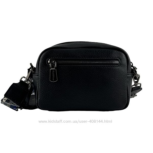 Стильна жіноча сумочка через плече із натуральної шкіри. Має два відділення. Перше відділення, на блискавці, досить містке, всередині є дві кишеньки - відкрита і на блискавці. Друге відділення поменше, закривається на блискавку та магнітну кнопку. З тильної сумки також розташована кишеня на блискавці. Тканина ручка регулюється за довжиною.