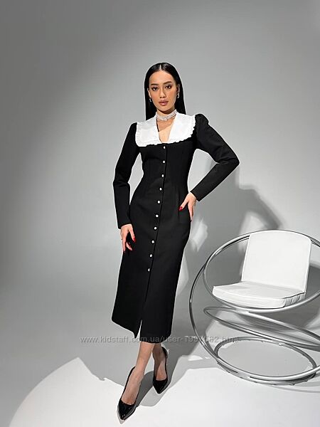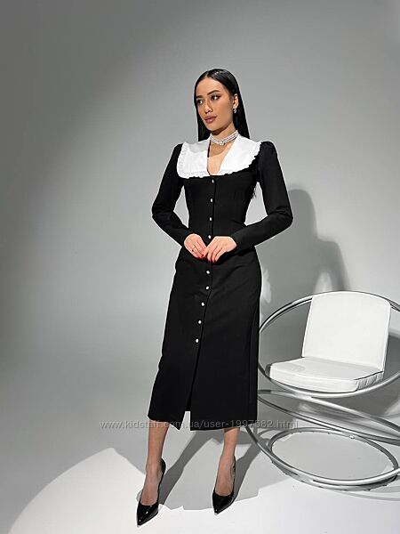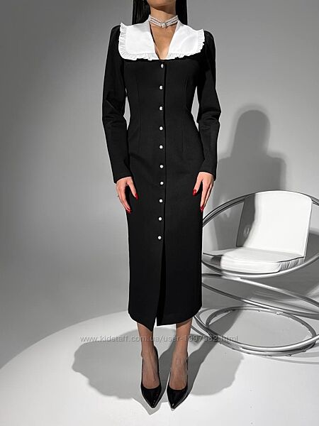 Вечірня сукня з коміром з гудзиками міді облягаюча чорна класична