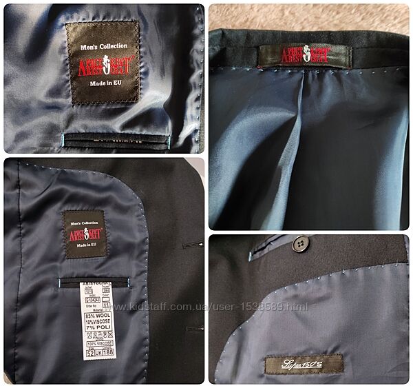 Костюм в ідеальному стані, піджак на підкладці, брюки можна розігнути.Піджак має три зовнішні кишені і дві внутрішні, на рукавах по чотири ґудзики.