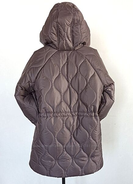 Стьогана зимова подовжена куртка з акцентом на талію з куліскоюКолір - чорний та мокко